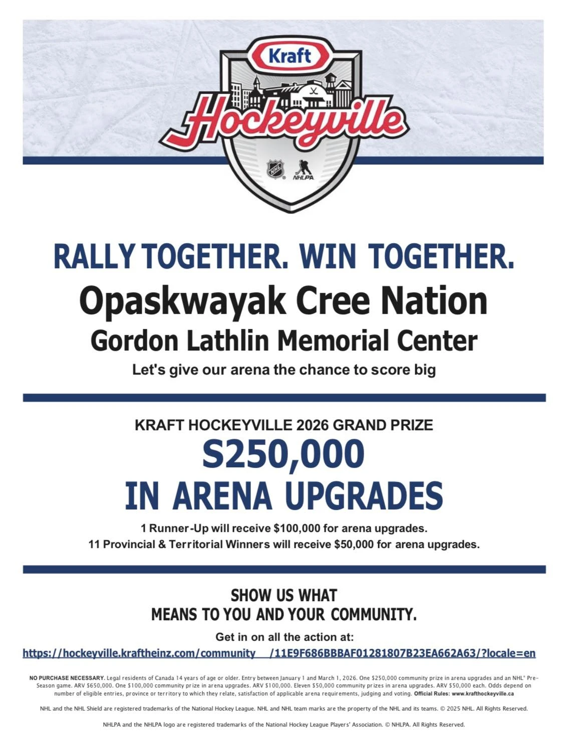 The historic Gordon Lathlin Memorial Centre has been nominated for Kraft Hockeyville’s $250,000 arena upgrade competition, and community support will be key to securing a win. The 20-year competition, sponsored by Kraft Heinz, has always focused on encouraging communities to come together in the name of hockey.